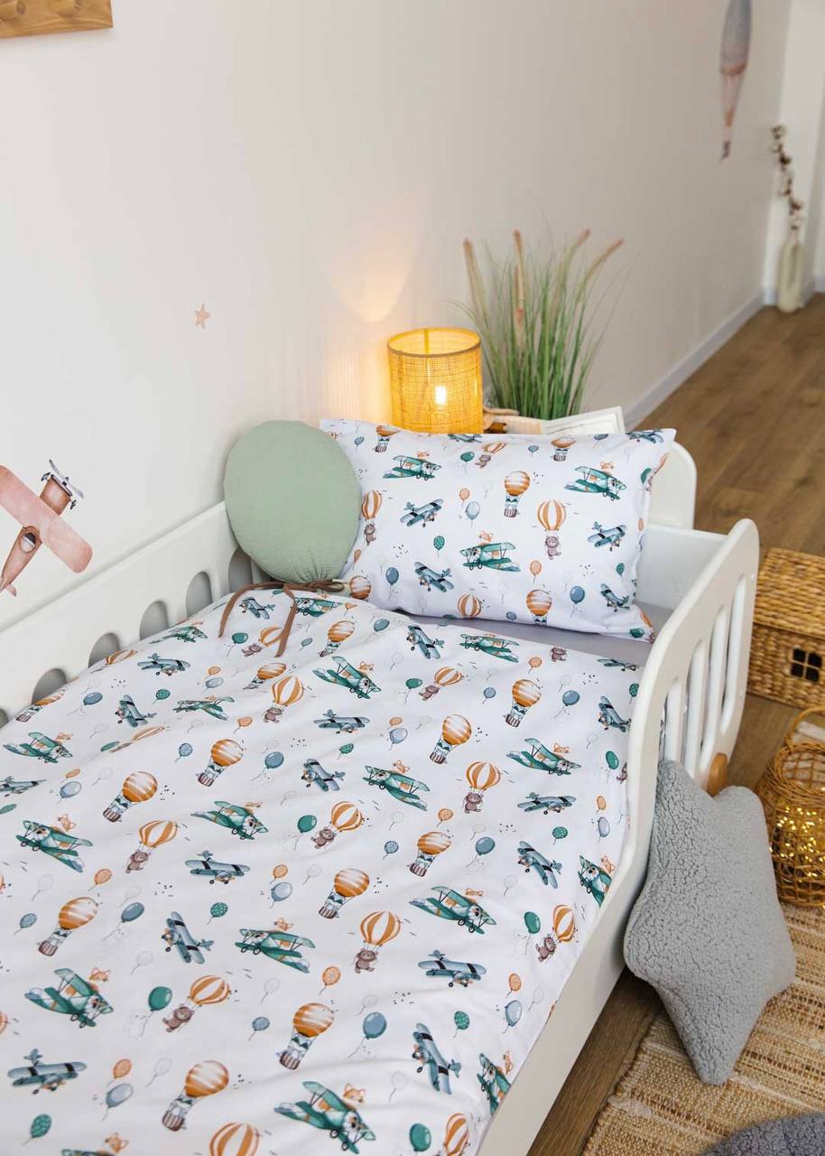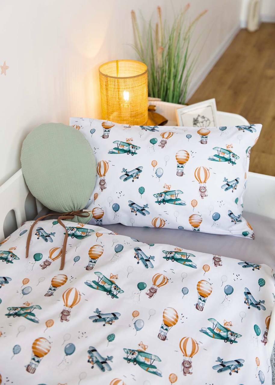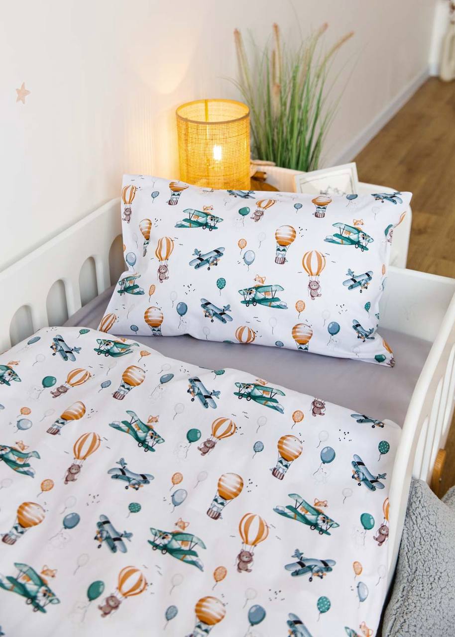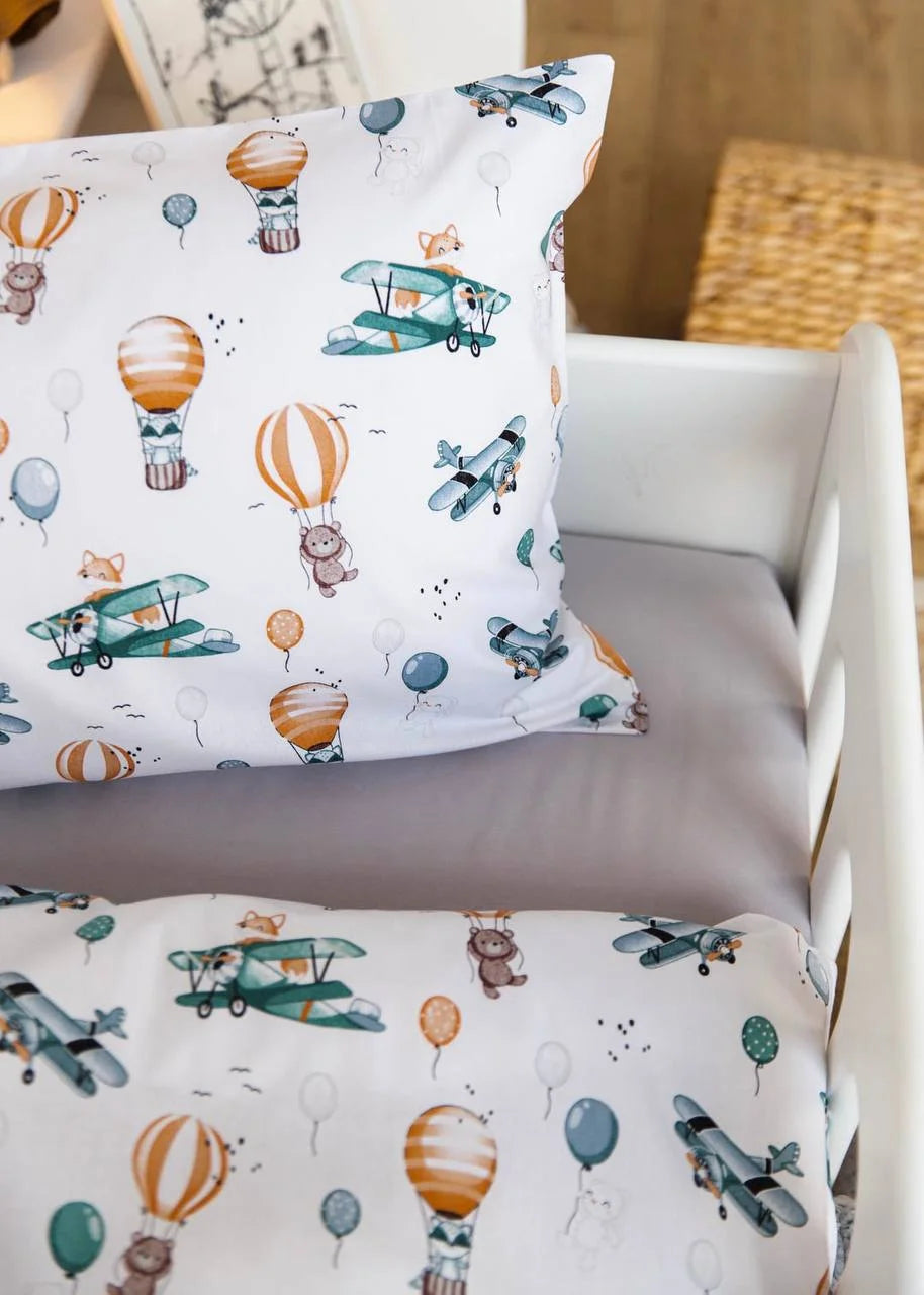 The Balloon Print Crib Bedding Set (Grey) brings a sense of calm and lightness to your baby’s nursery. The playful hot air balloon pattern is beautifully balanced with solid Grey poplin elements, creating a soft, modern look that feels both gentle and timeless. The neutral grey tone adds elegance while keeping the overall design warm and inviting. Made from Poplin (100% Cotton), this bedding set is naturally breathable, smooth to the touch, and durable enough for everyday care.