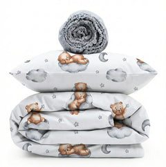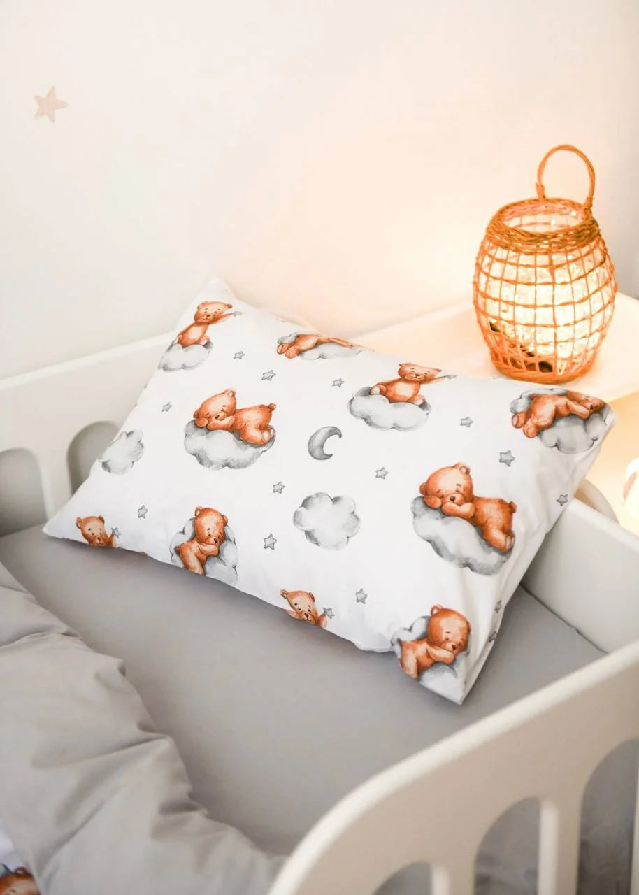 Bear On Cloud Grey Print Poplin Crib Bedding Set
