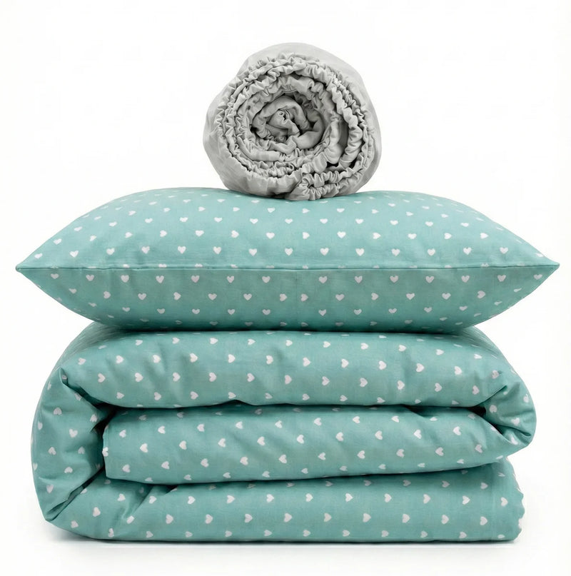 Delicate hearts and premium cotton softness for a tranquil rest.
