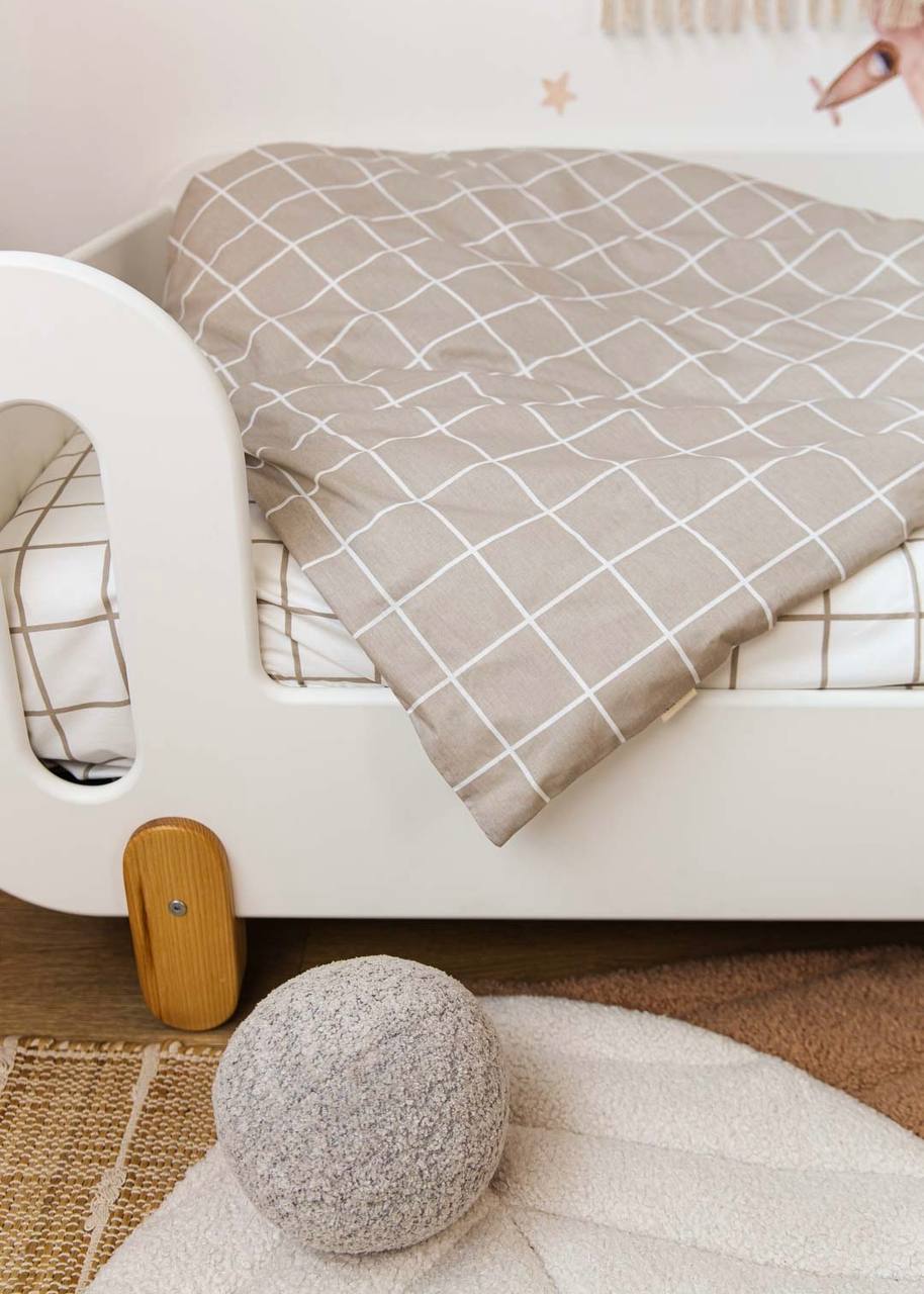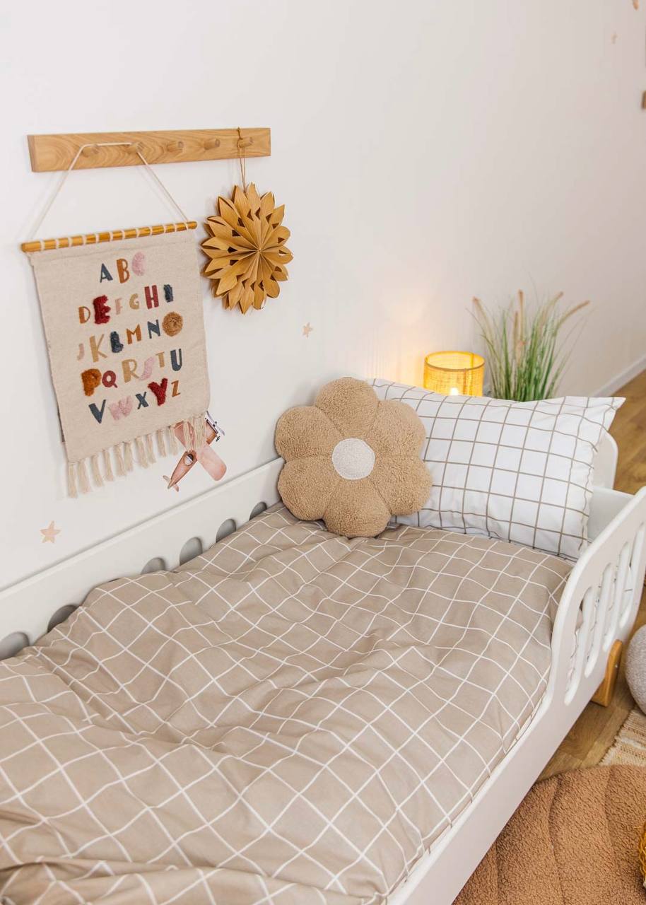 The Minimalist Print Plaid Crib Bedding Set offers a high-quality feel and a clean, sophisticated design. Featuring a timeless checkered pattern in a neutral sand palette, this set is crafted from premium Poplin (100% Cotton) to ensure maximum breathability and a gentle touch against your baby’s sensitive skin. Poplin is a natural, durable material known for its soft, matte texture and excellent wear resistance, maintaining its shape and subtle color even after 300+ washes. The minimalist lines and calming tones create a quiet, comfortable, and stylish sleeping environment for your little one.