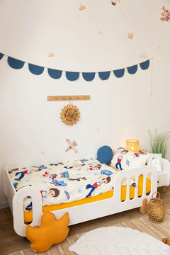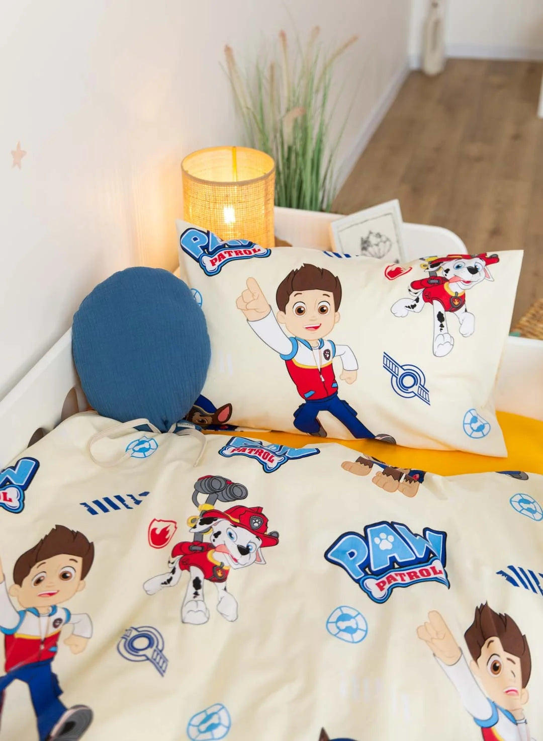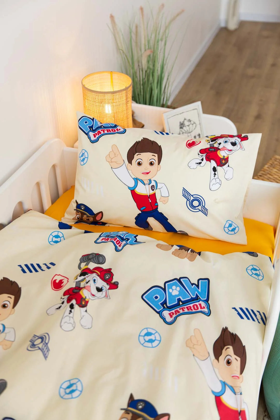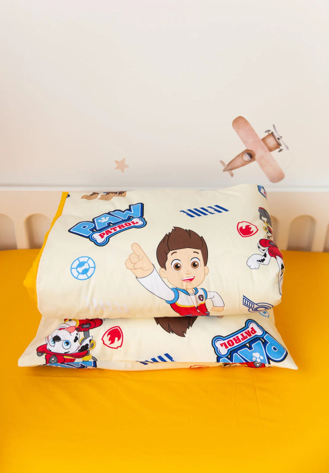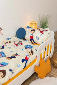 The Paw Patrol Print Crib Bedding Set offers a high-quality feel and a vibrant, character-inspired design. This set energetically pairs a playful print featuring Ryder and the heroic pups with a bright, sunshine-yellow solid fabric. Crafted from premium Poplin (100% Cotton), it ensures maximum breathability and a gentle touch against your baby’s skin. Poplin is a natural, durable material known for its soft texture and excellent longevity, maintaining its bold colors and shape even after frequent laundering. The cheerful characters and energetic color palette create a fun, comfortable, and inviting sleeping environment for your little hero.