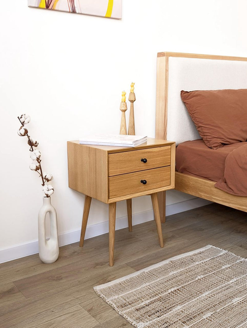 The Kyle bedside table is a stylish and practical companion to your bed, combining clean modern design with the natural beauty of solid wood. Its compact form provides convenient storage space for essentials, while the premium craftsmanship ensures durability and long-lasting performance.