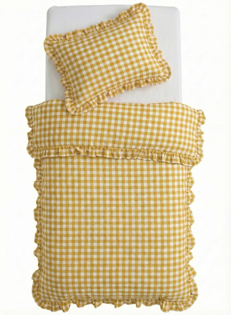 Yellow Squares Washed Cotton Plaid Crib Bedding Set