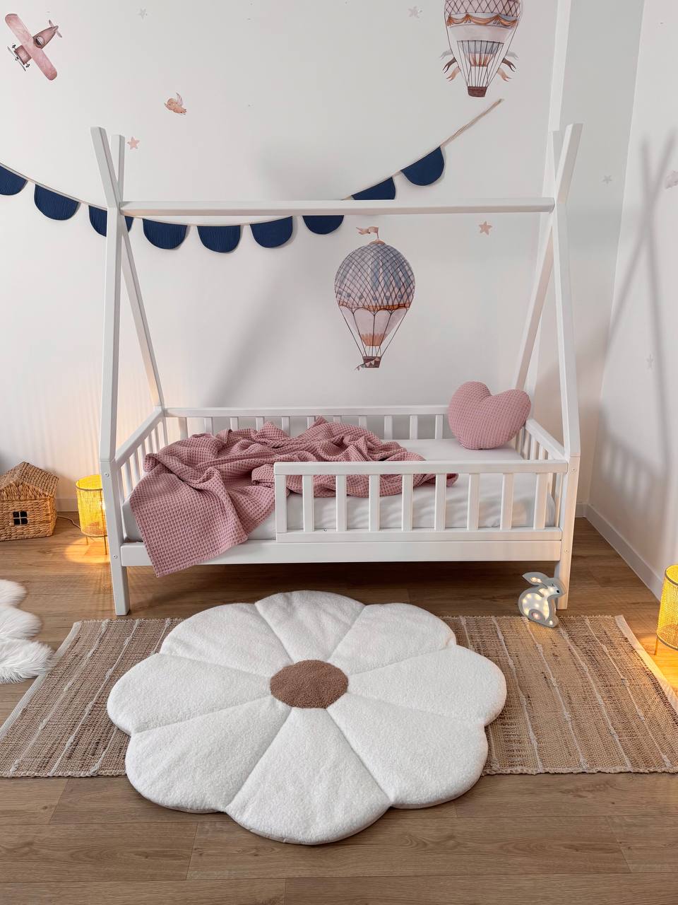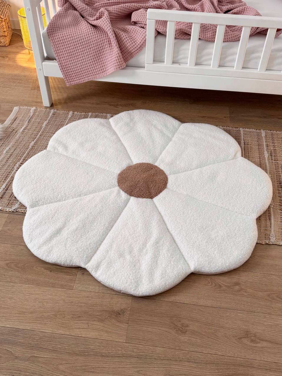 Add a whimsical touch to your nursery or playroom with this delightful Flower Shaped Rug. Featuring creamy milk-white petals surrounding a warm beige center, this rug brings a soft, floral charm to any space. Crafted from high-quality "Teddy" plush, it provides a safe, cloud-like surface for playing, reading, or simply relaxing.