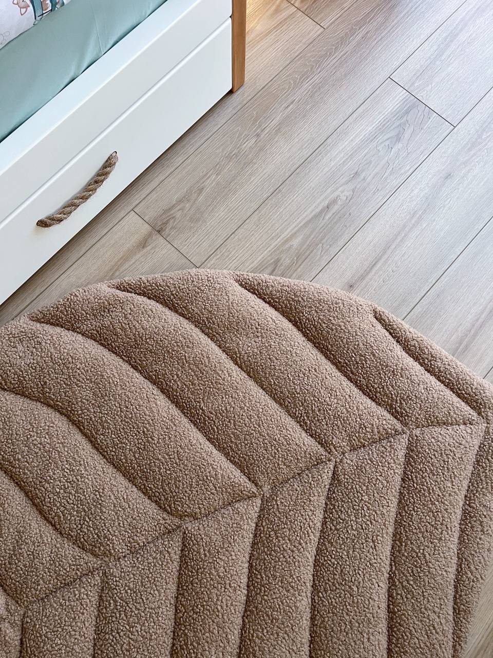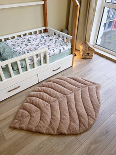 Designed in a charming leaf silhouette, this rug adds a layer of coziness and nature-inspired beauty to any room. Crafted from ultra-soft "Teddy" plush fabric, it offers a cloud-like texture that is perfect for a nursery, a reading nook, or as a bedside accent. Its neutral dark beige tone blends effortlessly with modern interiors, creating a calm and inviting atmosphere.