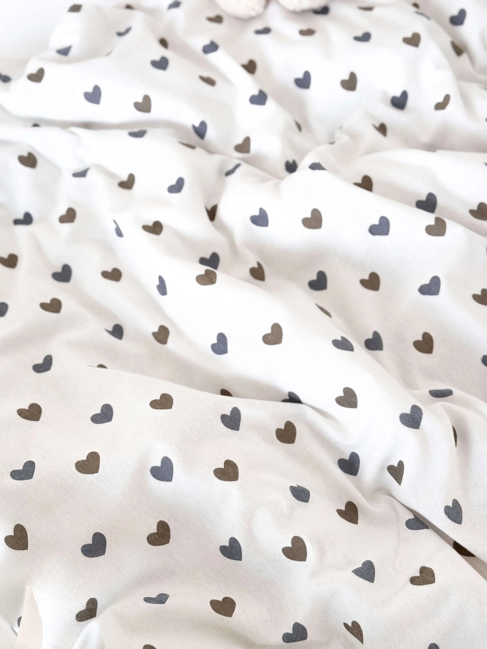Soft Hearts Print Cotton Flannel Crib Bedding Set