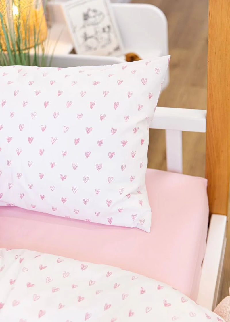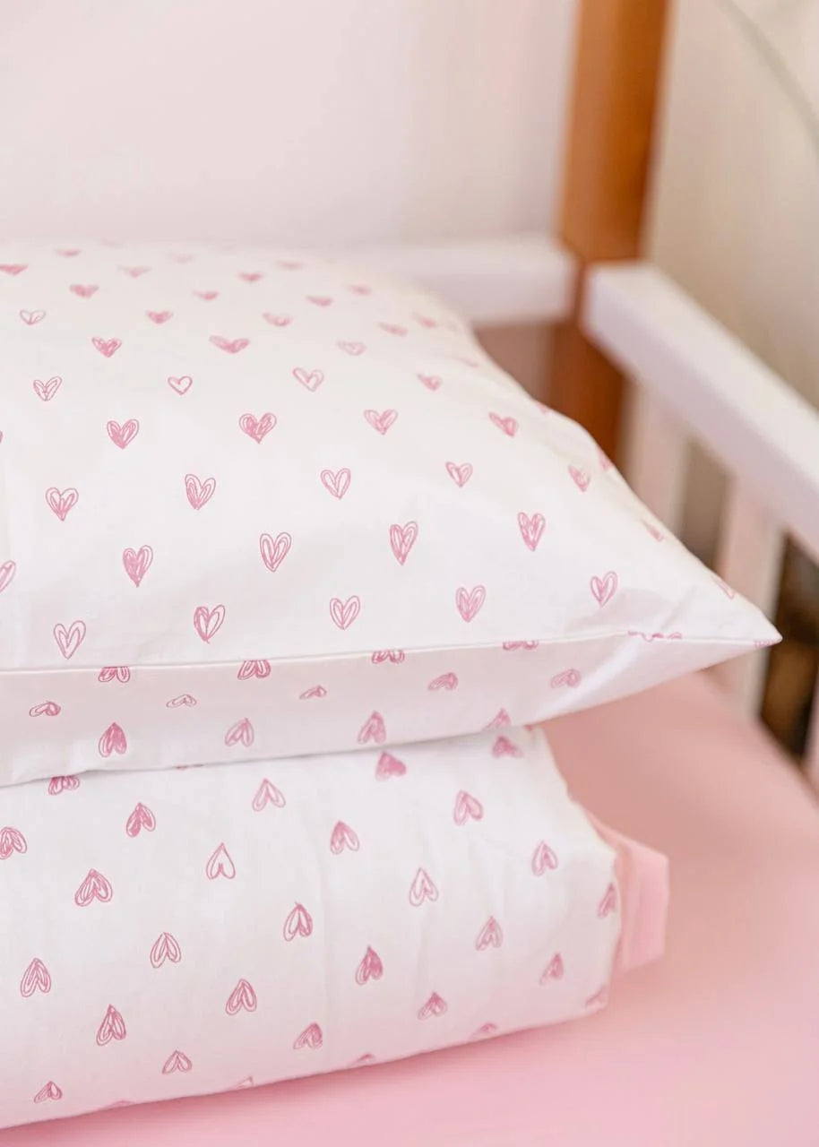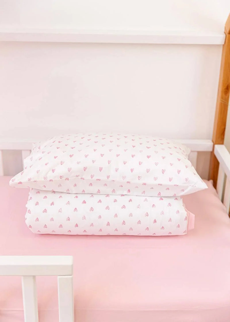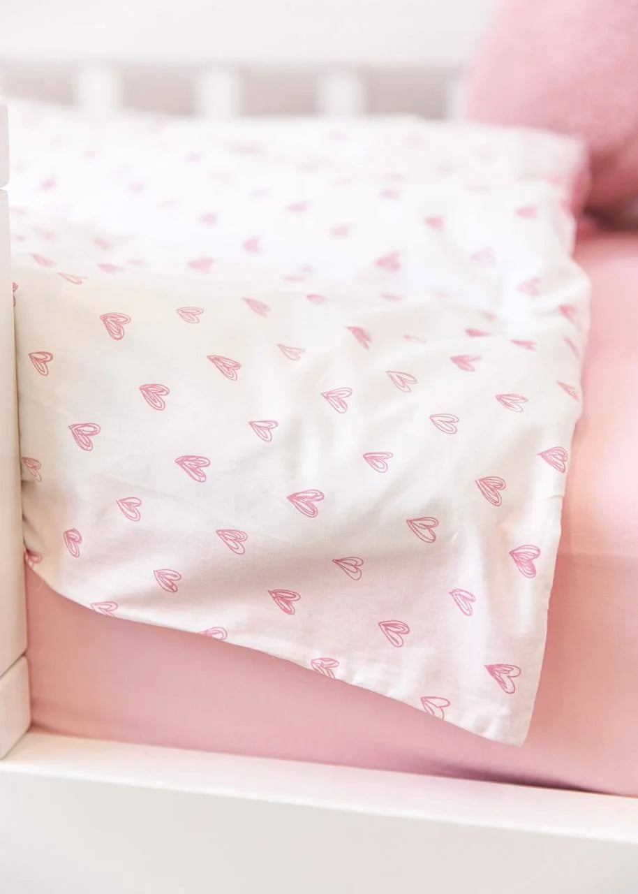 Pink Hearts Print Satin&Poplin Crib Bedding Set