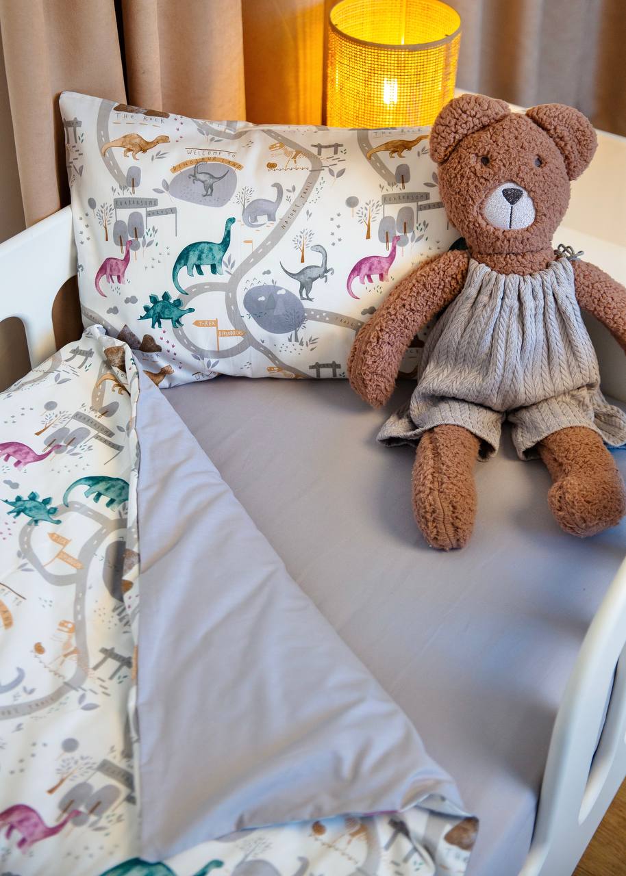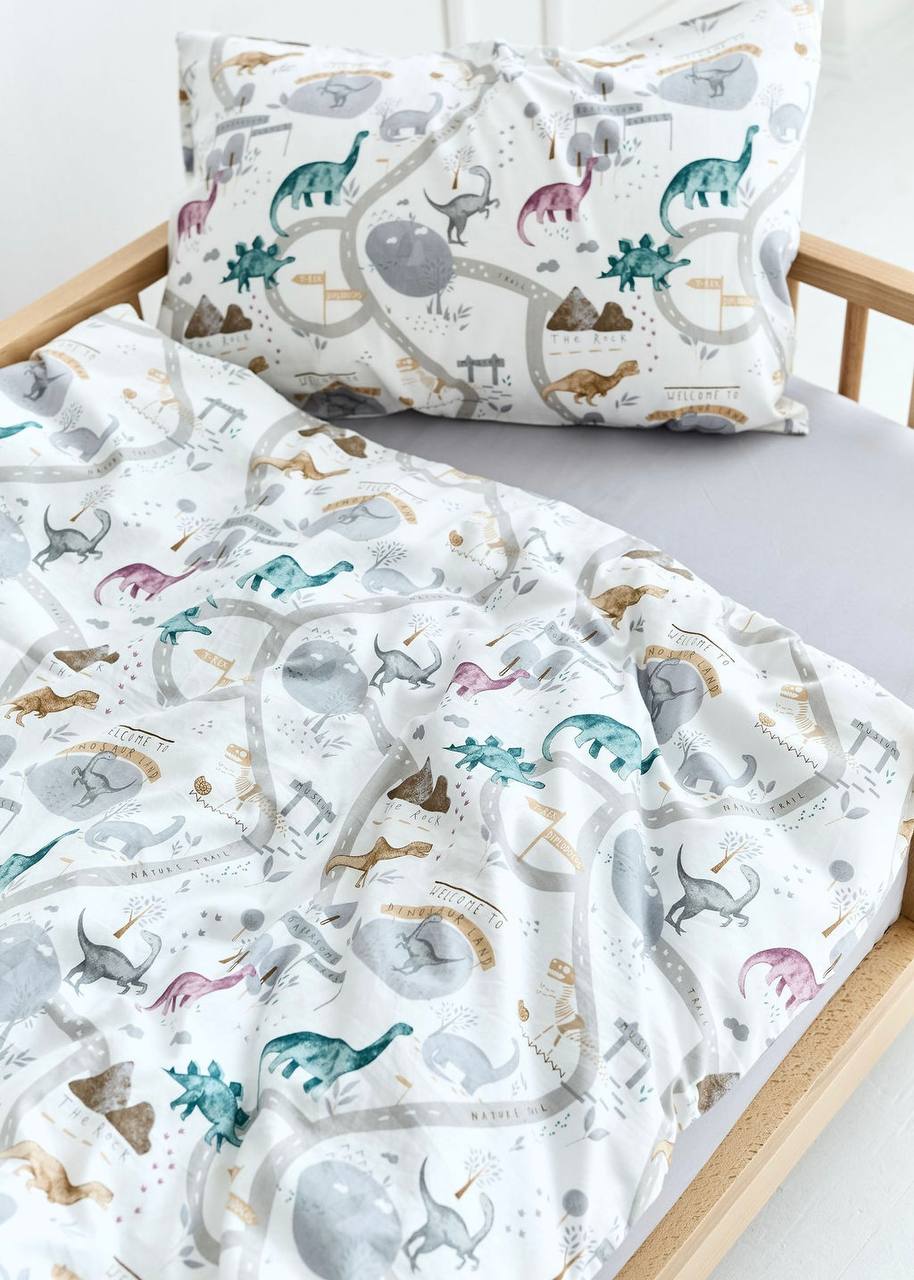 Dino Print Satin&Poplin Crib Bedding Set