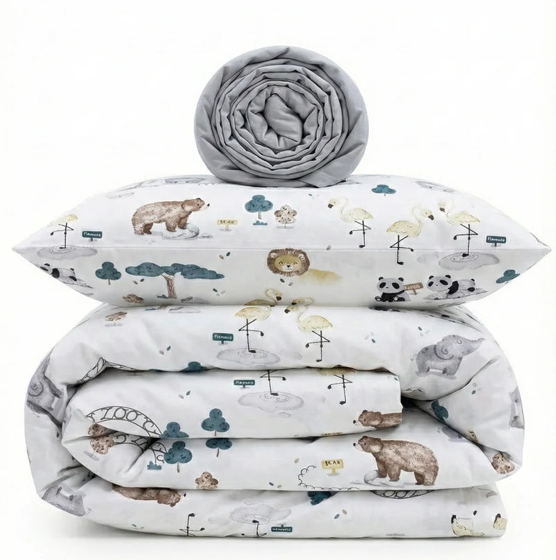 Zoo Grey Print Satin&Poplin Crib Bedding Set